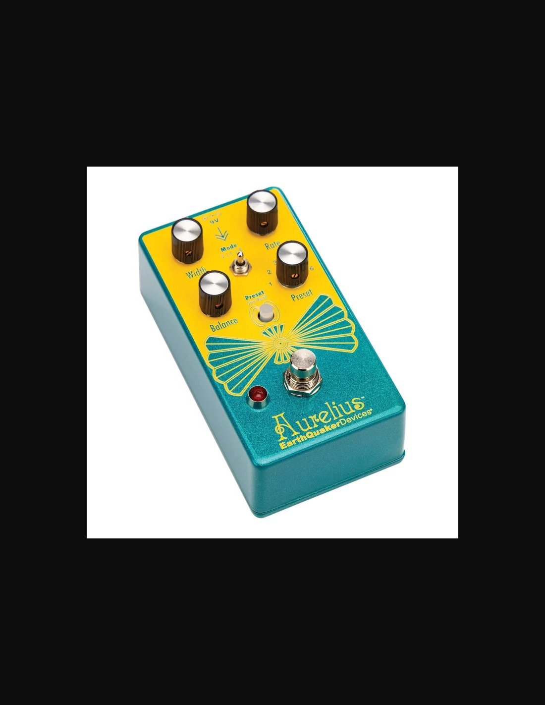 AURELIUS TRI-VOCE CHORUS - Chorus per Chitarra - Made in USA - Chorus a tre voci con sei preset programmabili - Toggle MOD per selezionare le modalità: Vibrato, Chorus e Rotary - Ingresso TRS per pedale d’espressione, assegnabile ai parametri Width, Rate o Balance - Controlli: Width + Rate + Balance + Preset + Mode V/C/R + Pulsante Save/Recall - Switch: On/Off True Bypass Flexi-Switch - Connessioni: 1x Jack 6,5 Input + 1x Jack 6,5 Output + 1x Jack TRS 6,5 EXP - Alimentazione: 9V DC negativo centrale - Assorbimento: 75mA - Dimensioni: 12,1x6,4x5,7cm.