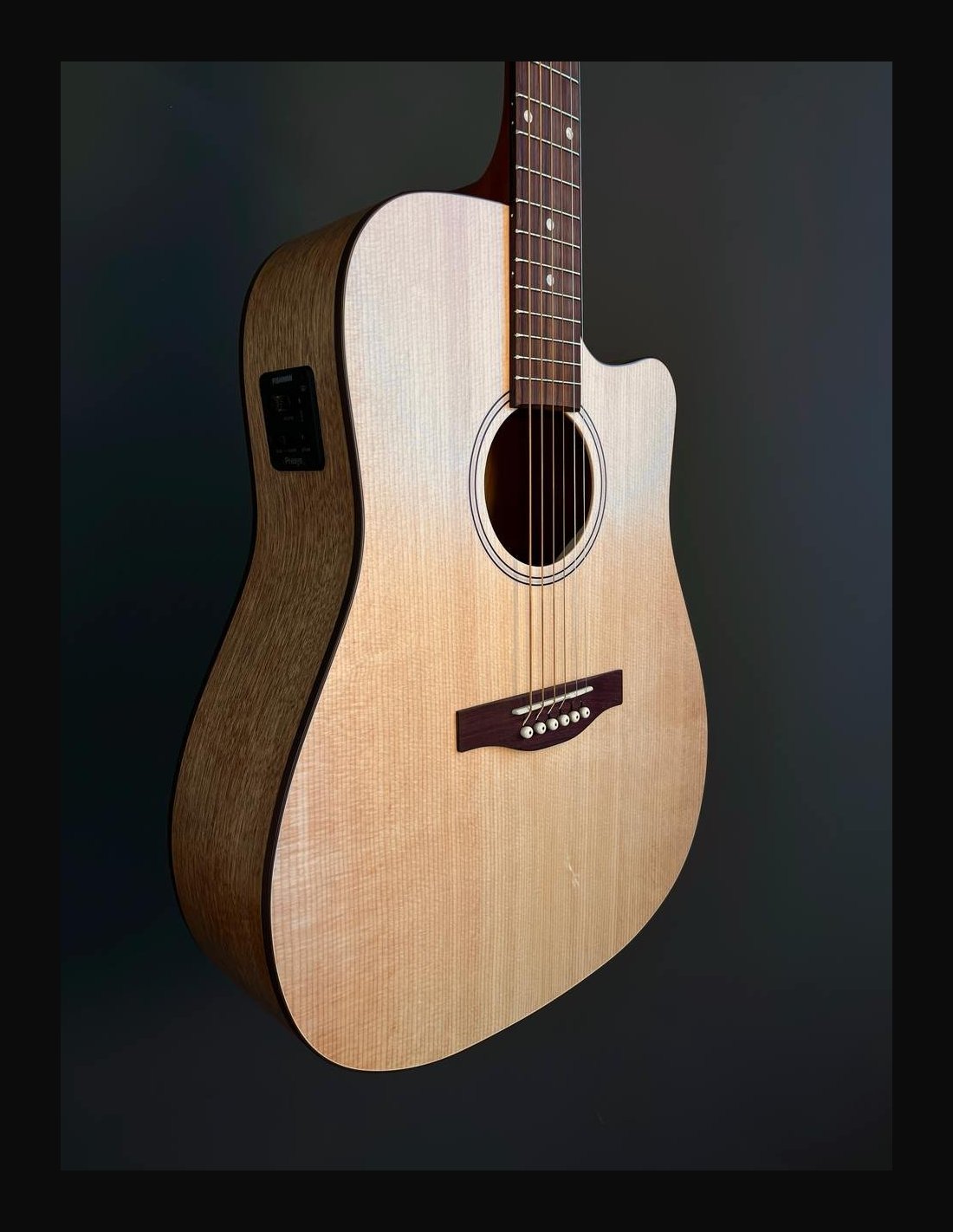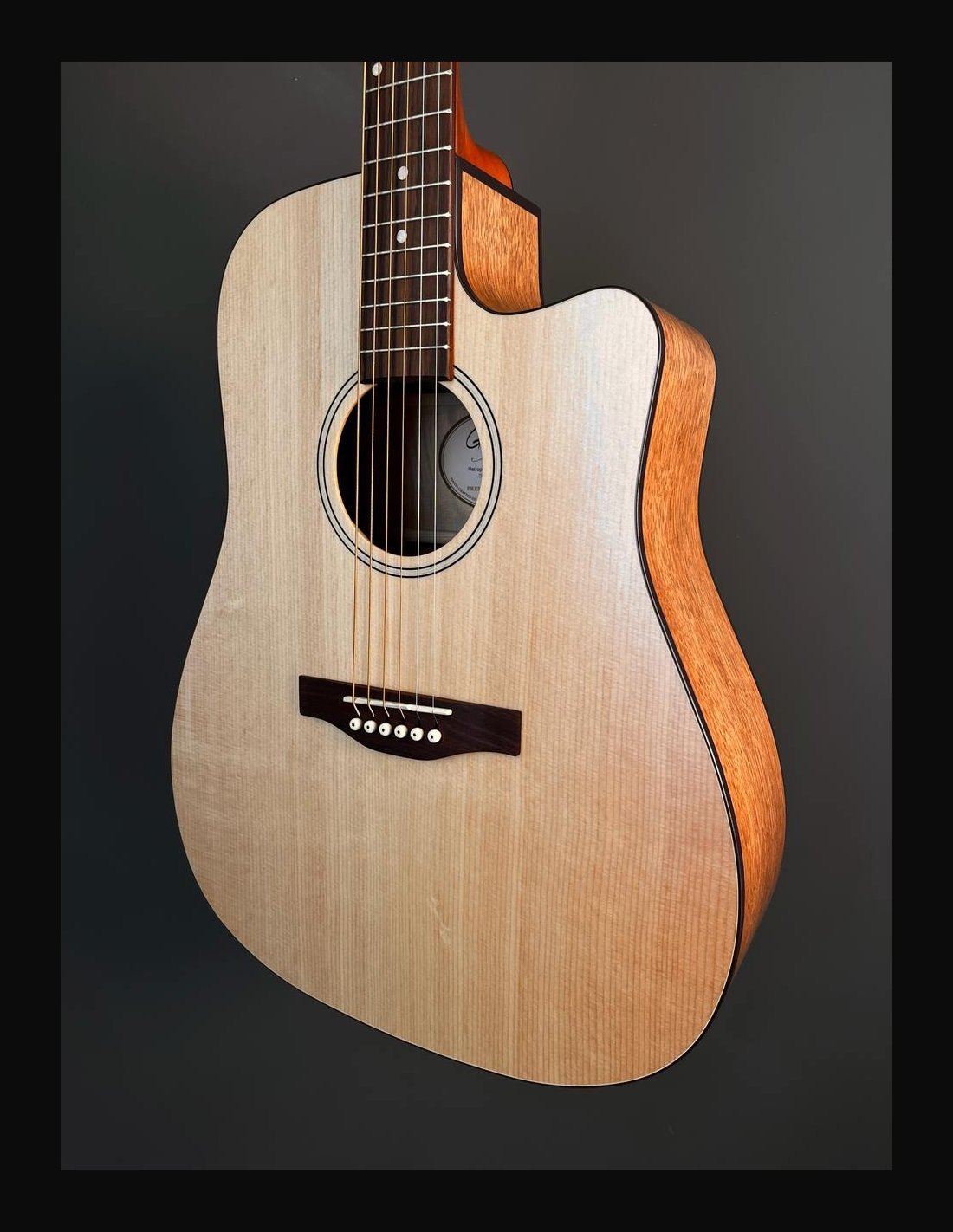METROPOLIS CW NATURAL EQ - Chitarra 6 corde dreadnought cutaway elettrificata - Serie Godin Acoustic - Made in Canada - Lunghezza scala: 25,5" (647,70mm) - Top: abete massello - Fondo: ciliegio canadese - Fasce: ciliegio canadese - Manico: acero - Ponte: palissandro - Tastiera: palissandro - Tasti: 21 - Radius: 16" - Capotasto: Tusq 1,72" (43,69mm) - Traversino: Tusq - Binding top: black/white - Binding fasce: nero - Binding manico: nero - Binding paletta: legno - Rosetta - Intarsi tastiera: pearloid - Meccaniche: Godin 16:1 die-cast cromate - Colore: natural - Finitura: satinata - Elettrificazione: Fishman Presys II - Borsa imbottita Godin inclusa.