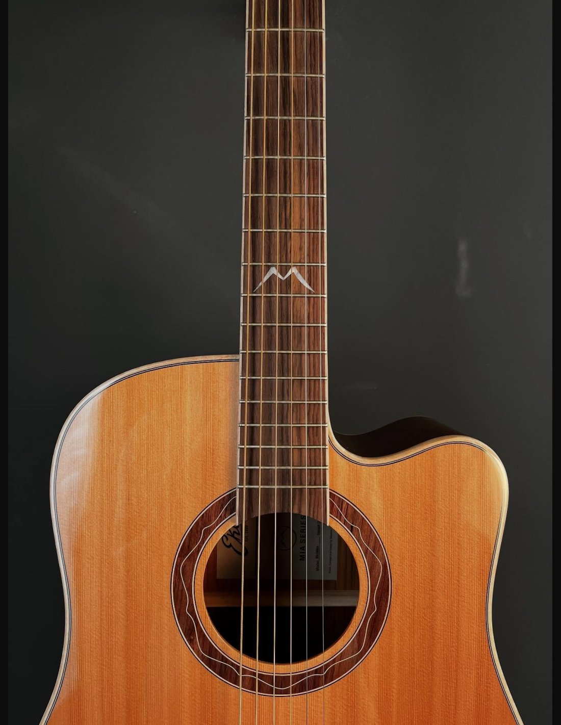 La MIA D400ce si presenta in colore Natural con finitura Gloss, con forma Dreadnought spalla mancante, caratteristica che permette al chitarrista di raggiungere agevolmente i tasti più acuti.